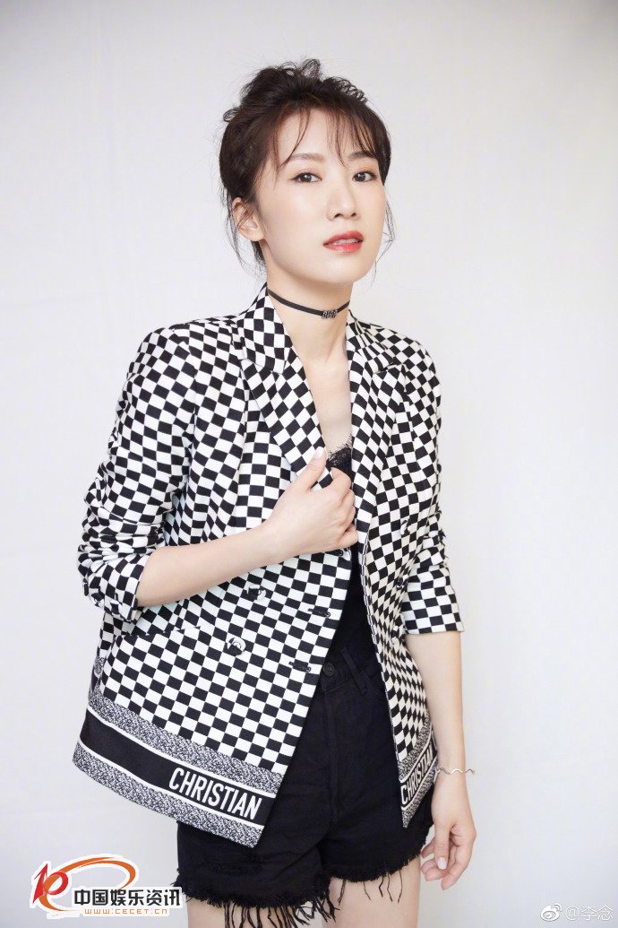 李念西服外套搭配热裤 笑容明媚看起来十分靓丽