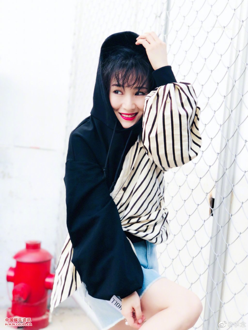 李念双丸子头清新造型 大秀纤细白皙美腿