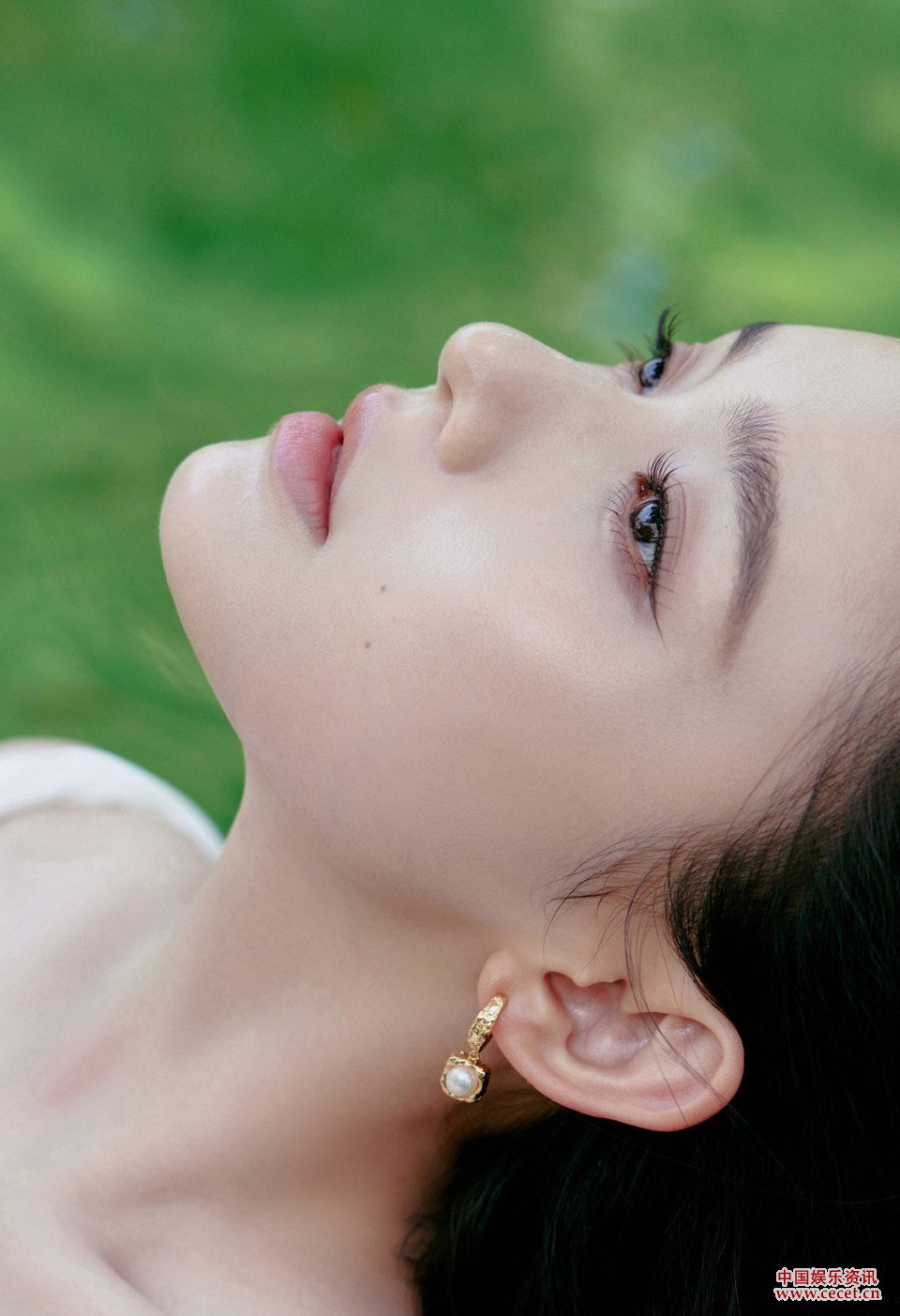 林允漫步于午后徐风 纯白裙摆摇曳静享时光流淌
