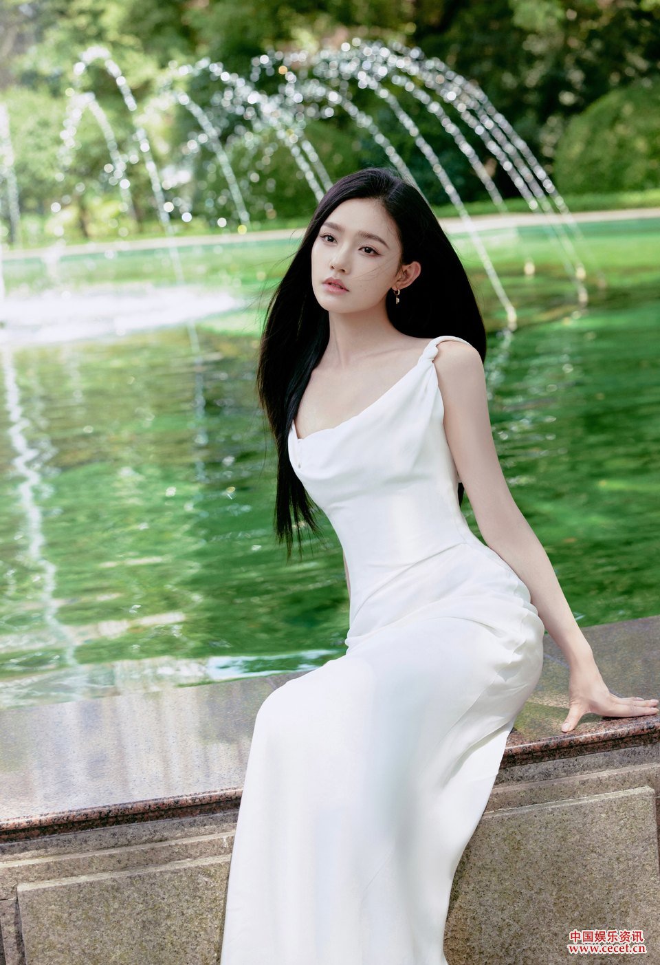 林允漫步于午后徐风 纯白裙摆摇曳静享时光流淌
