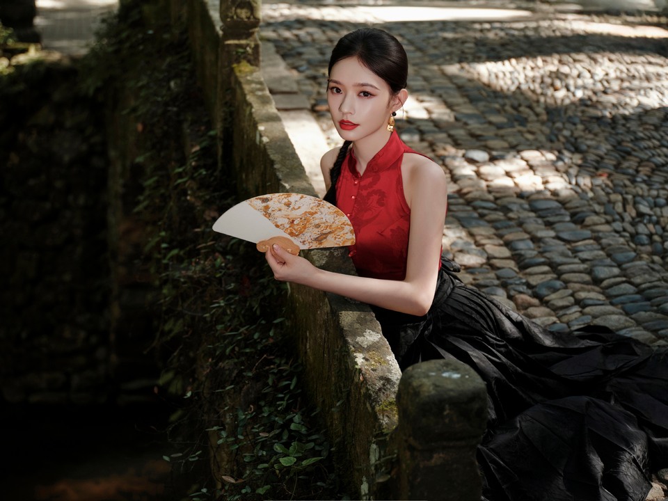 林允竹叶碎影点缀佳人衣袂 古韵雅致晕开浪漫叙事