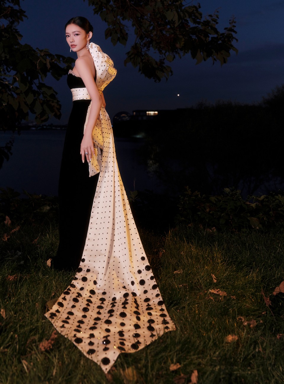 林允竹叶碎影点缀佳人衣袂