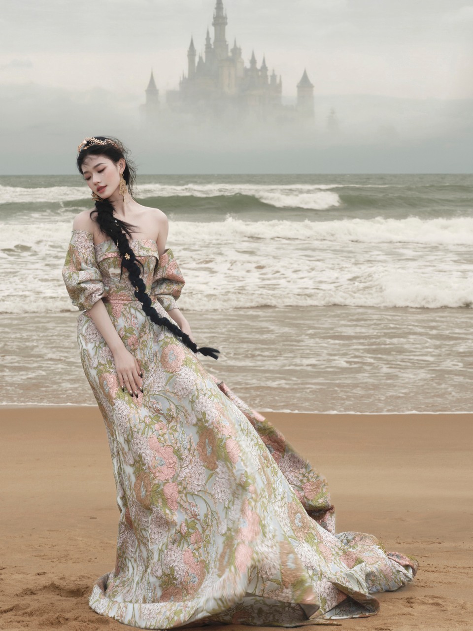 林允立于海雾蜃景中的时光裂隙 加冕光晕织就的王冠