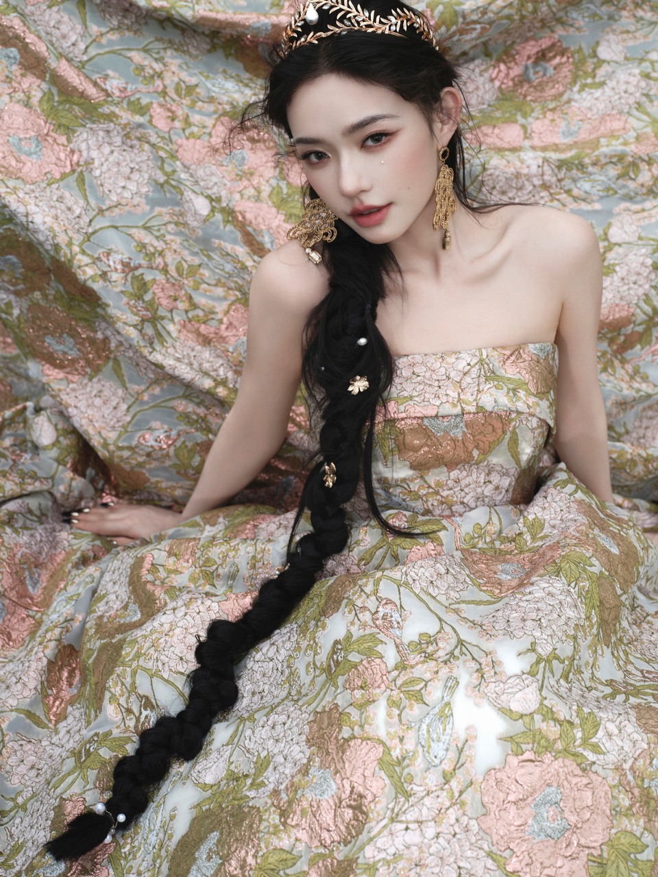 迪丽热巴花簇环拥缀满星芒