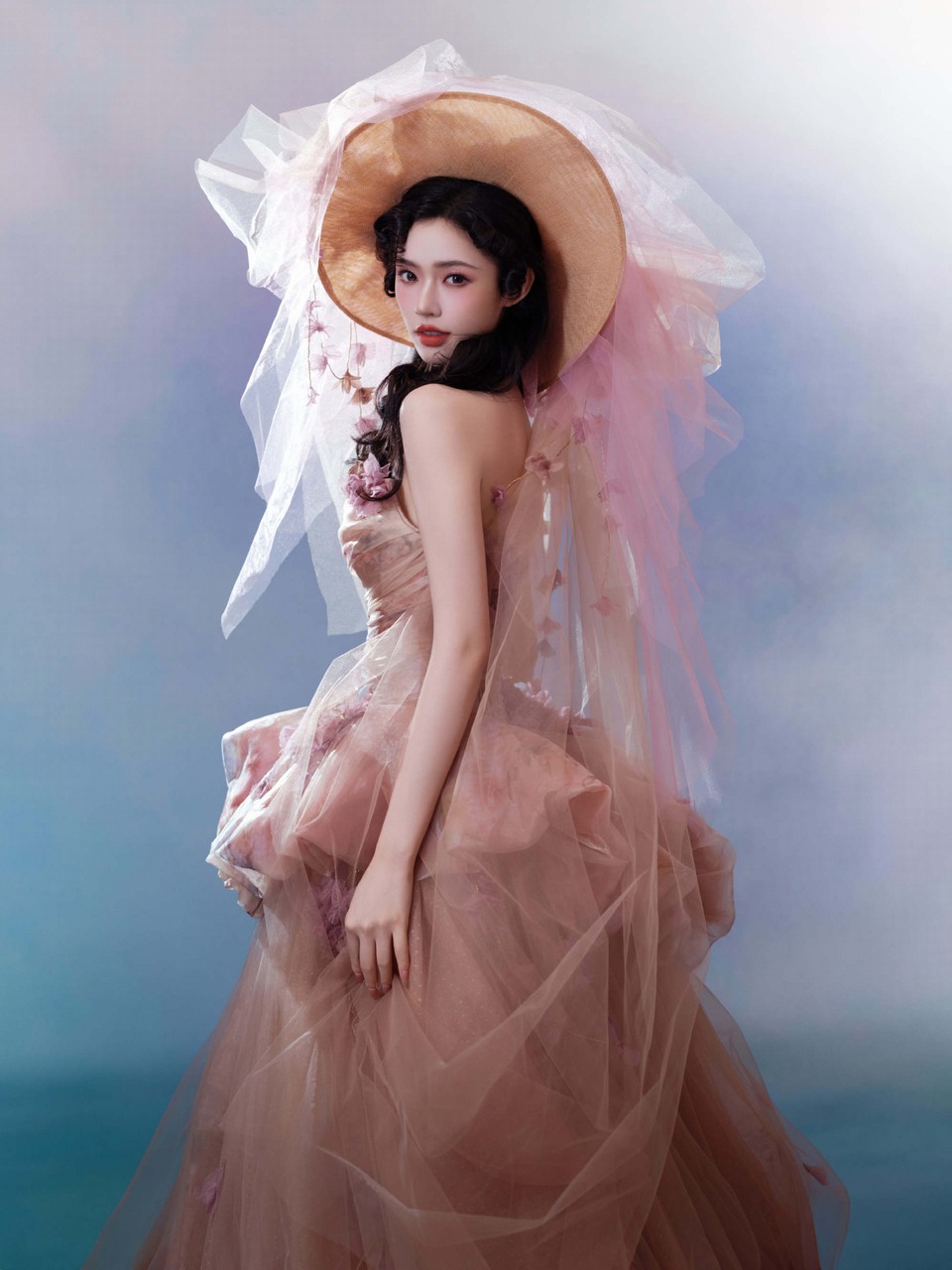 孟子义粉色柔纱轻盈