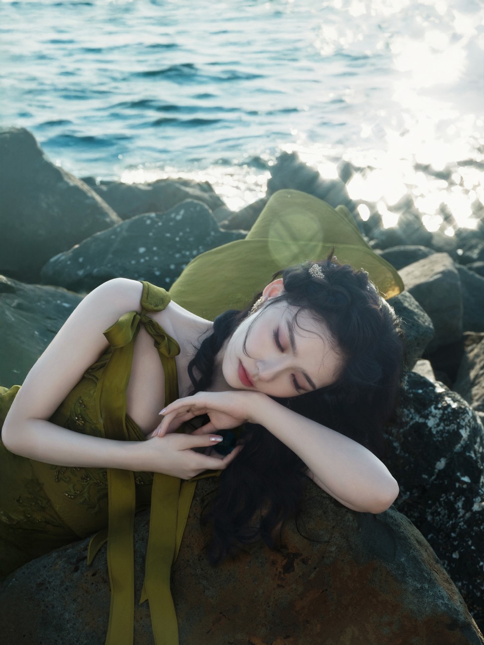 林允海岸吹来复古情致 鲜花自潮汐漫上轻纱