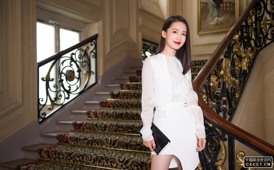 李沁白色短裙利落有型 长发垂肩凸显优雅气质