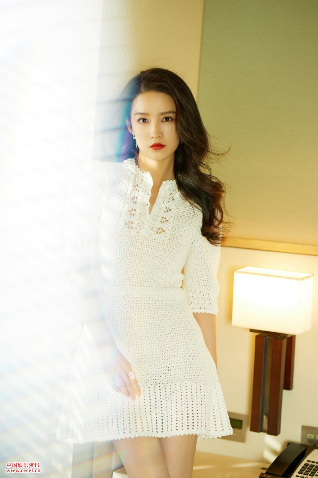 李沁针织短裙甜美亮相 卷发披肩妆容娇艳