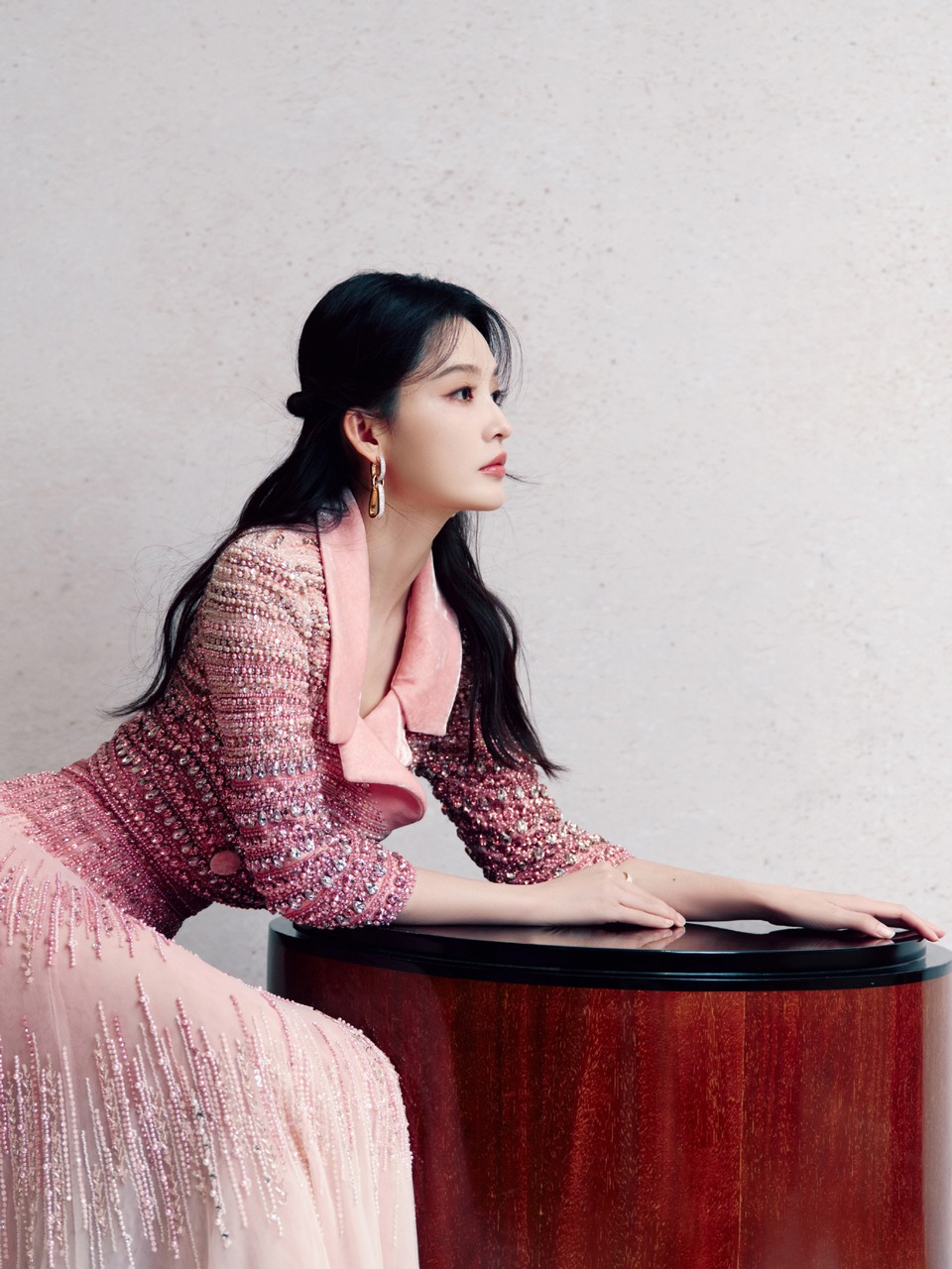张婧仪墨色长裙轻盈摇曳