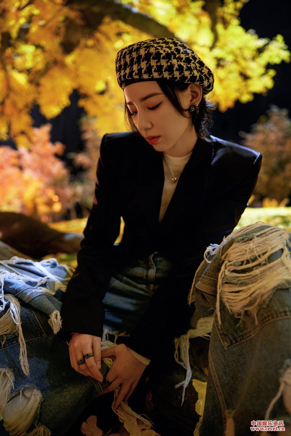 李斯丹妮行走在沉积的落叶 充满童话氛围感
