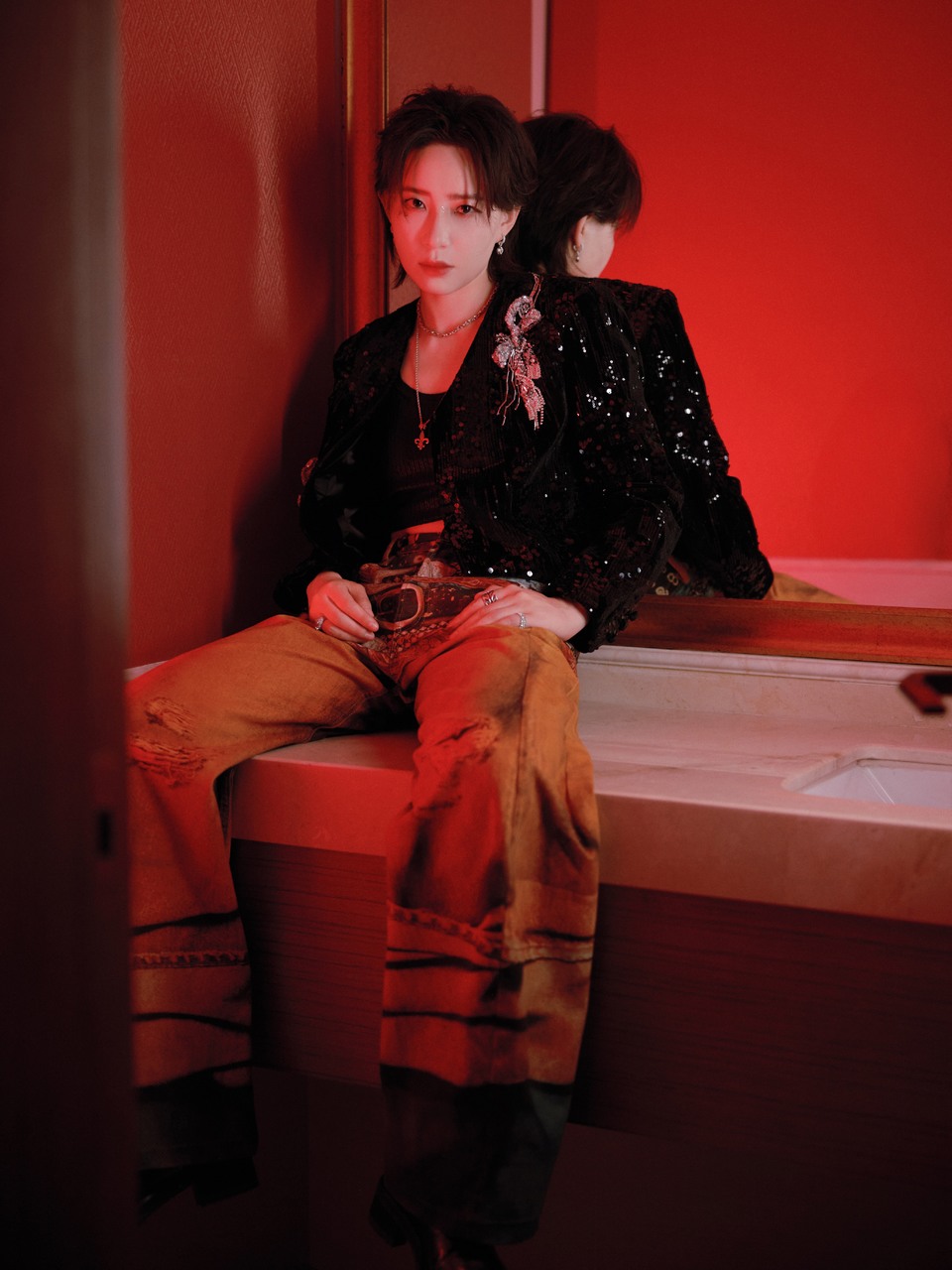 吴谨言黑色摩登酷飒