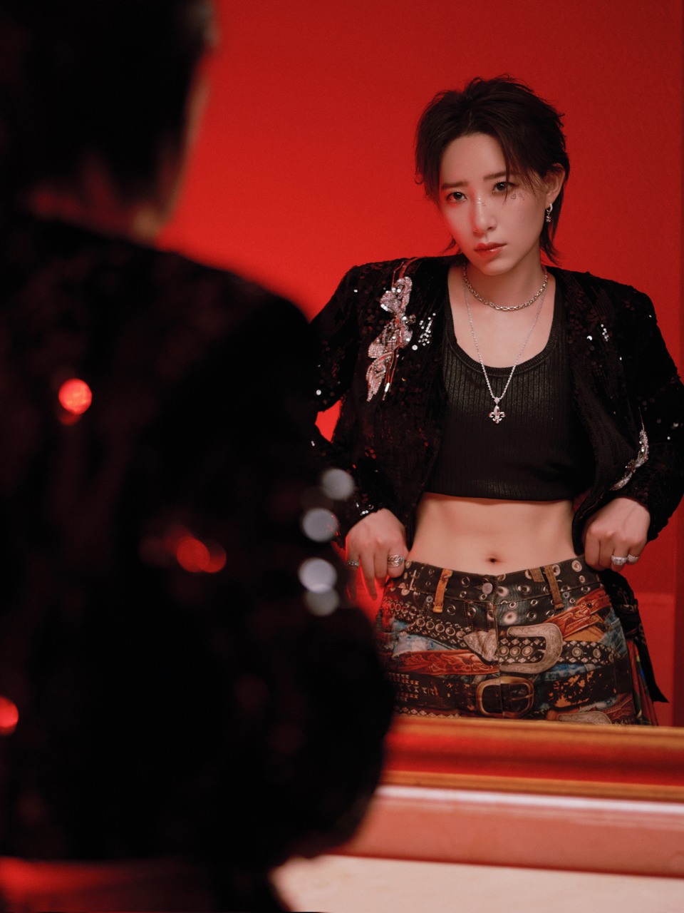 吴谨言黑色摩登酷飒