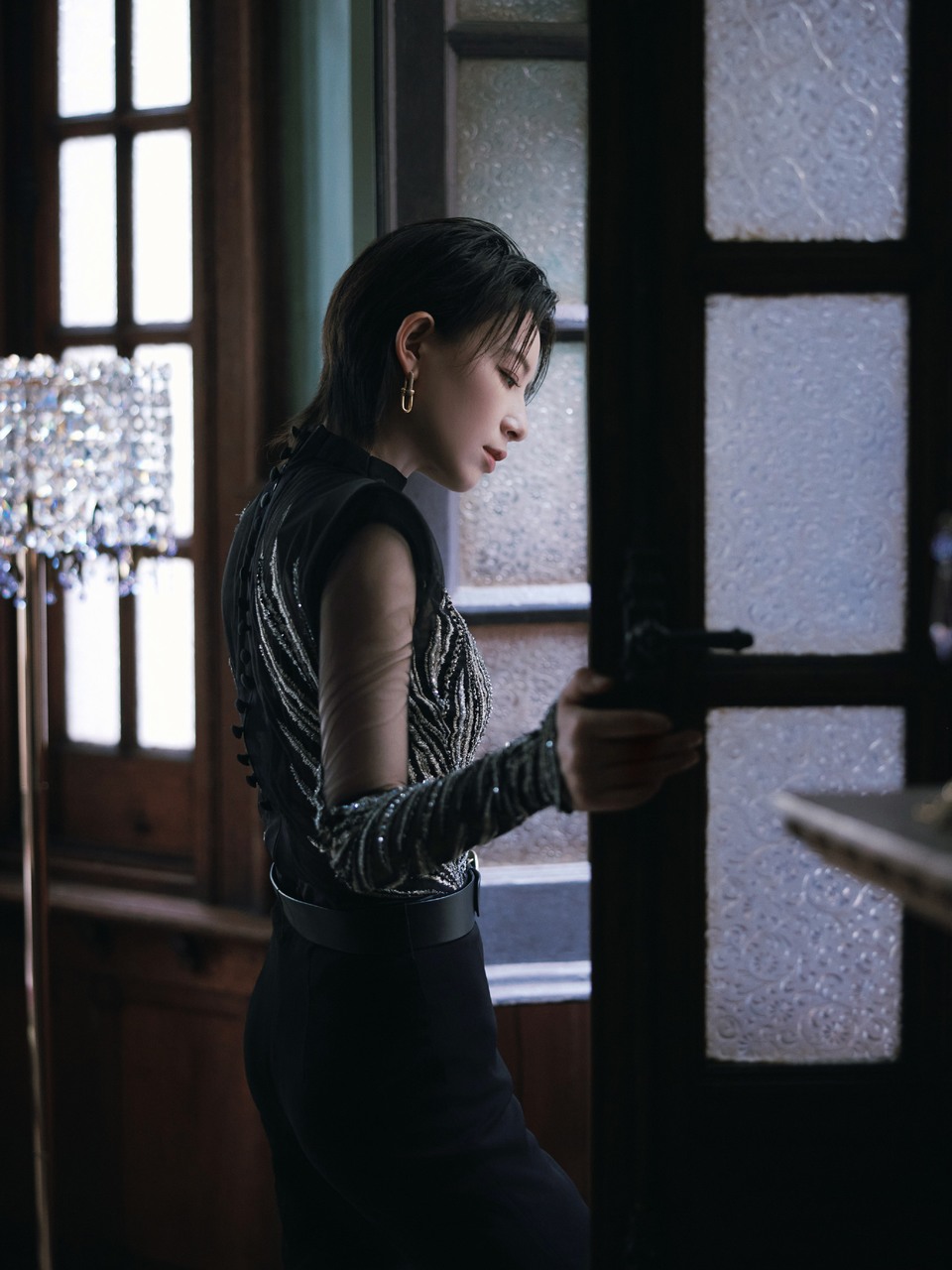 李斯丹妮披上复古摩登的优雅 用全黑缝合时光