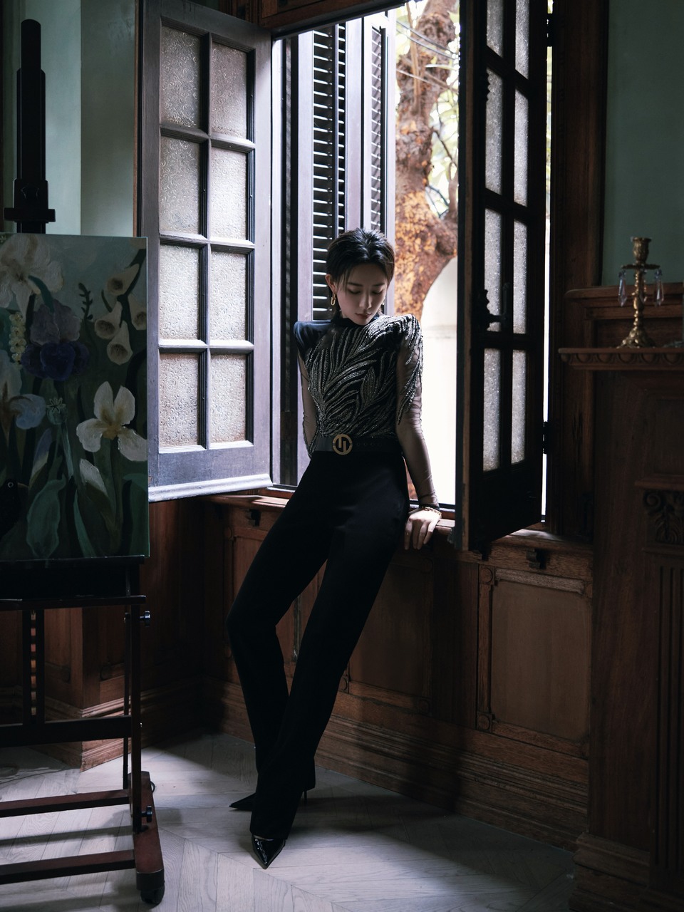 李斯丹妮披上复古摩登的优雅 用全黑缝合时光