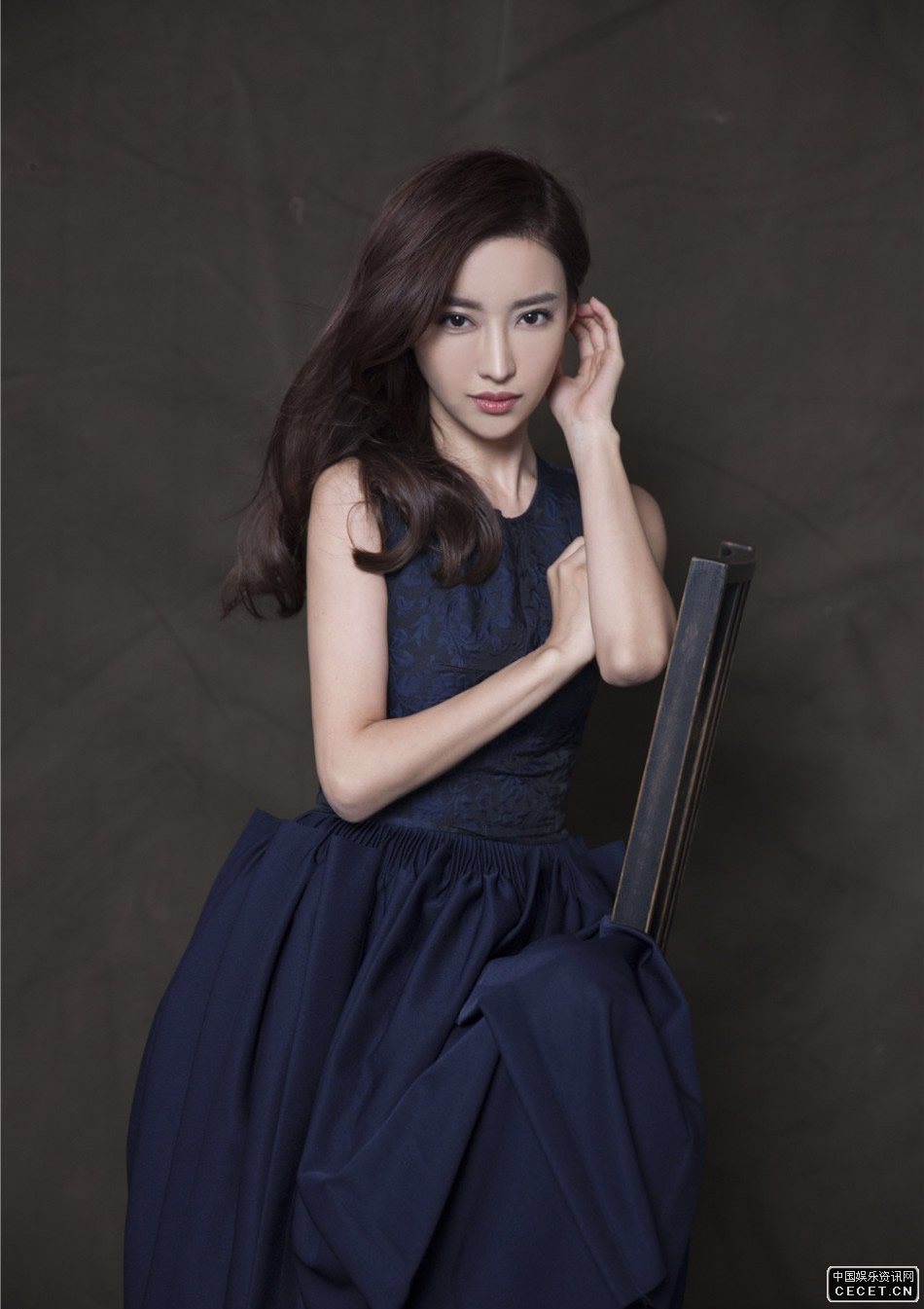 刘凡菲蓝裙时尚写真 展白皙肌肤与精致五官