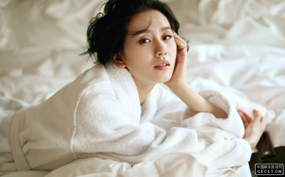 刘诗诗床上浴袍大片 五官精致慵懒十足撩人