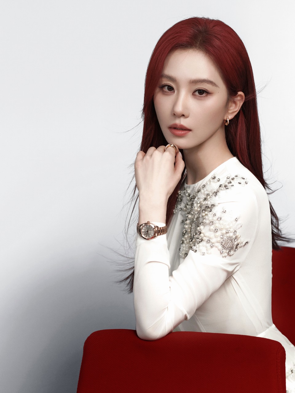 古力娜扎赭红作幕点缀