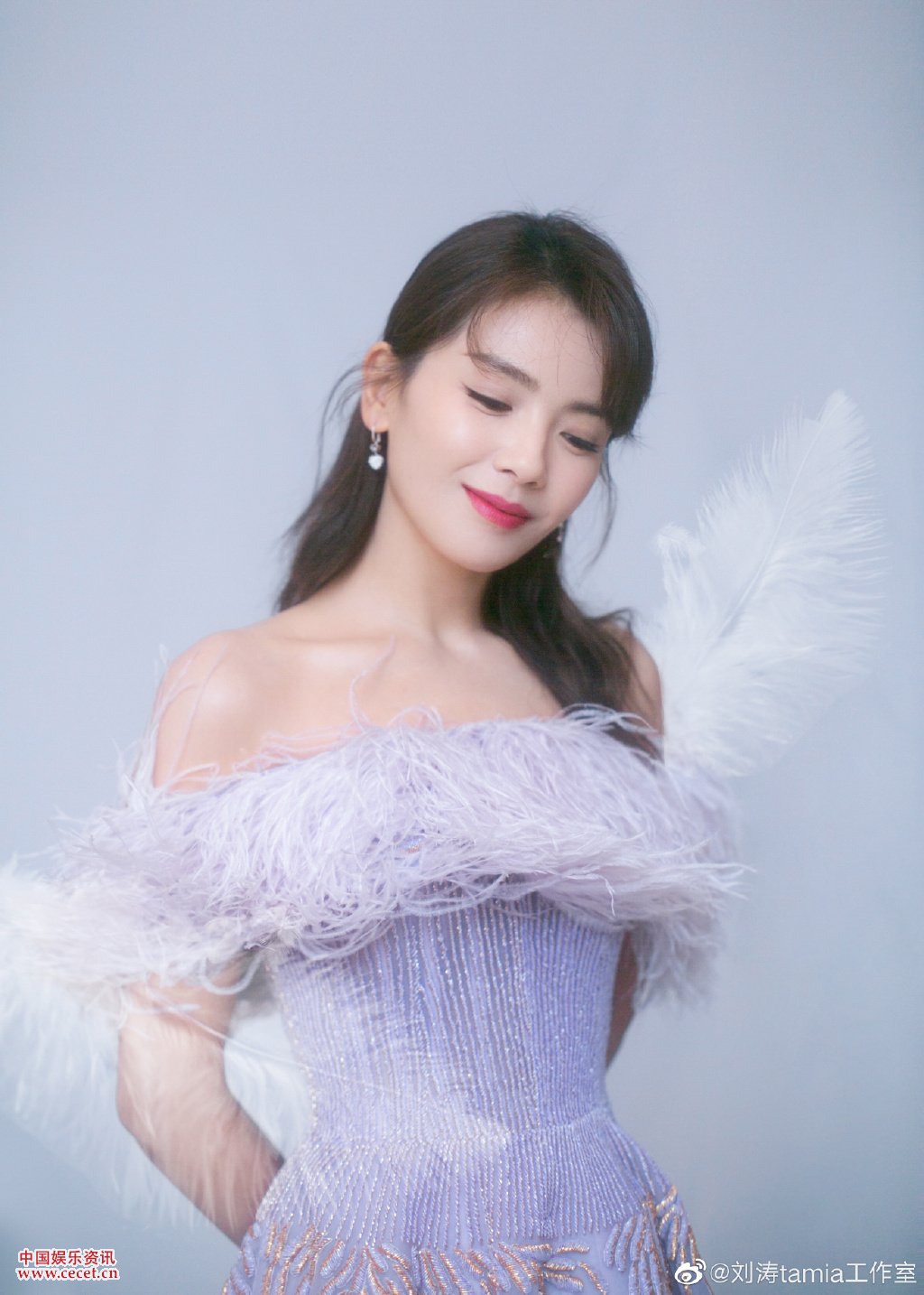 刘涛香芋紫羽毛裙大片 蕴藏娇艳温柔气质