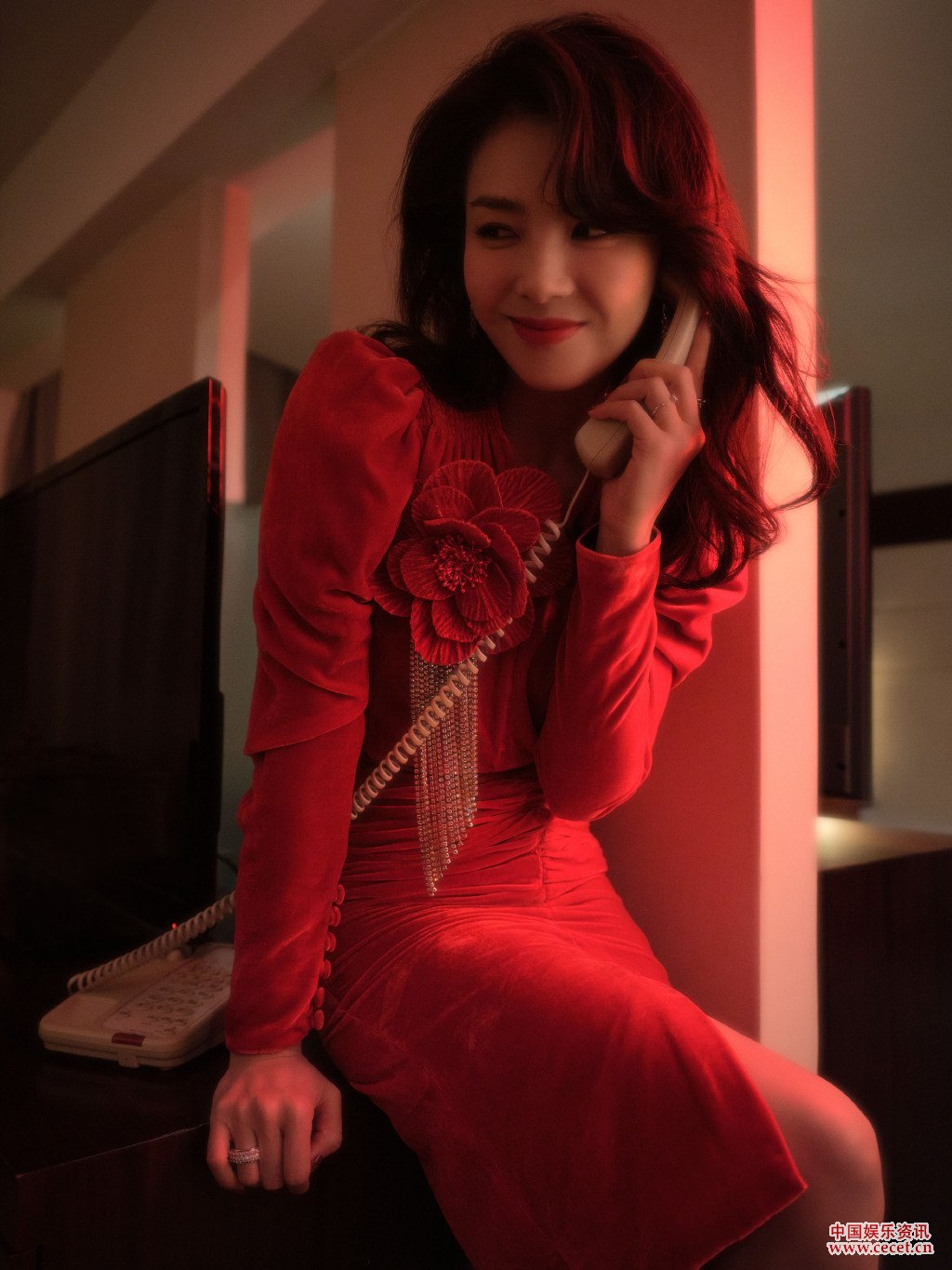 刘涛倚栏红妆风情绰约 黑发雪肌魅影翩跹