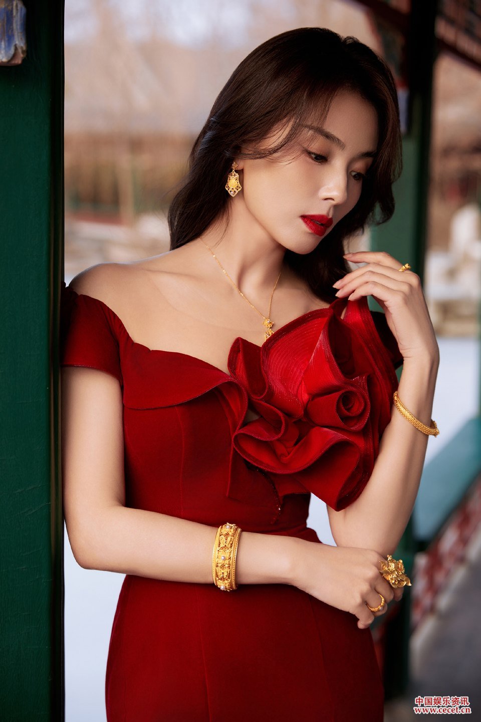 刘涛红墙清影垂怜朱颜 丽人倚黛色邂逅一抹东方红