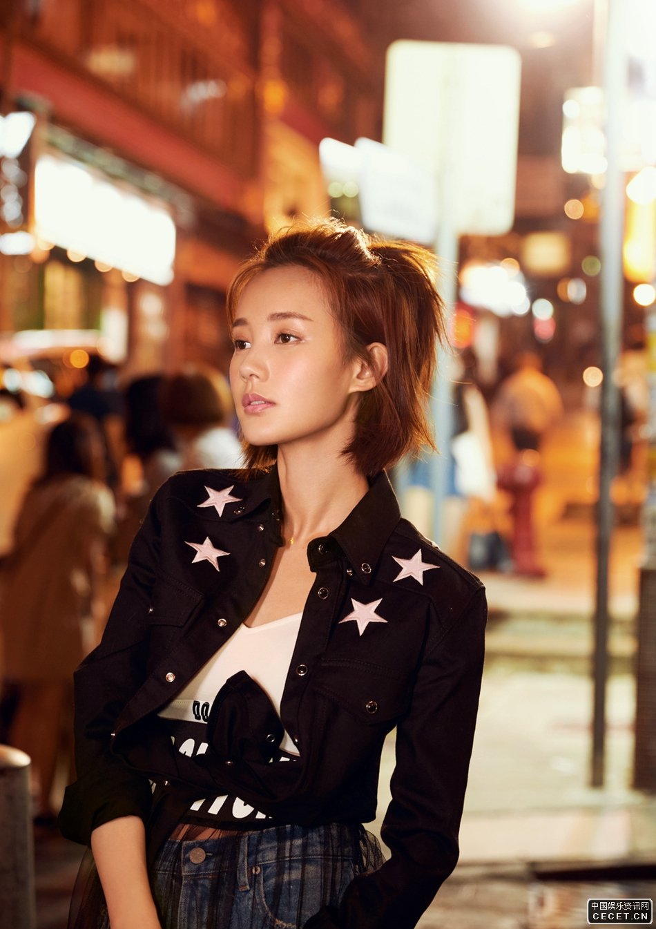 李一桐街拍都市感十足 喇叭袖衬衫搭配牛仔裤