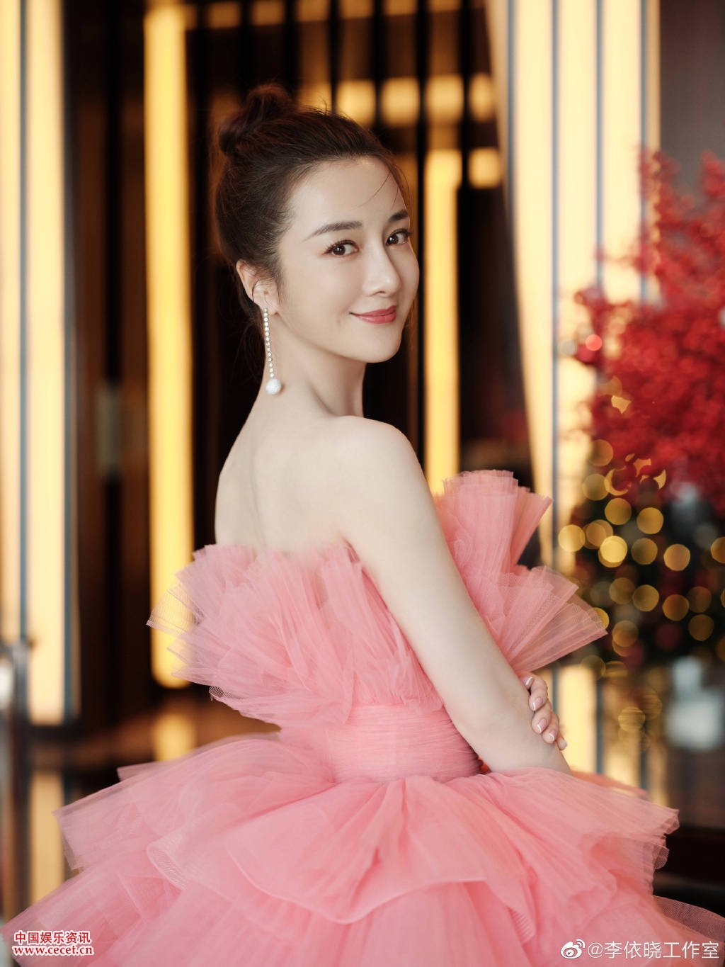李依晓胭脂粉曳地蛋糕裙 笑容甜美温柔优雅