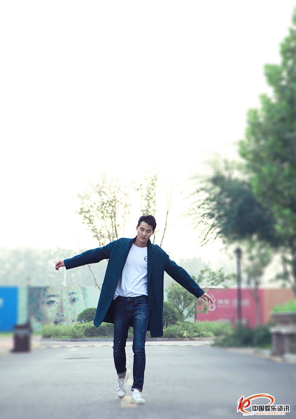 李振中长大衣公园街拍 上演完美“长腿杀”
