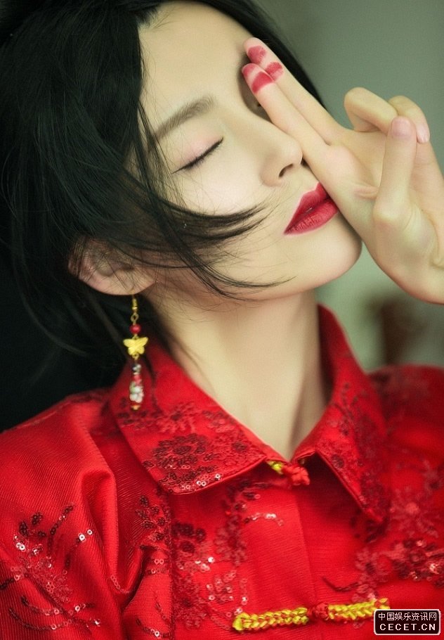 卢杉清爽短发红衣写真 寓意着新年红红火火