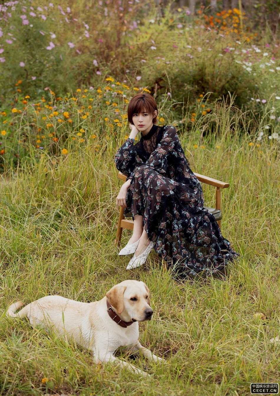 卢杉自然系时尚大片 蕾丝长裙出镜俏皮浪漫