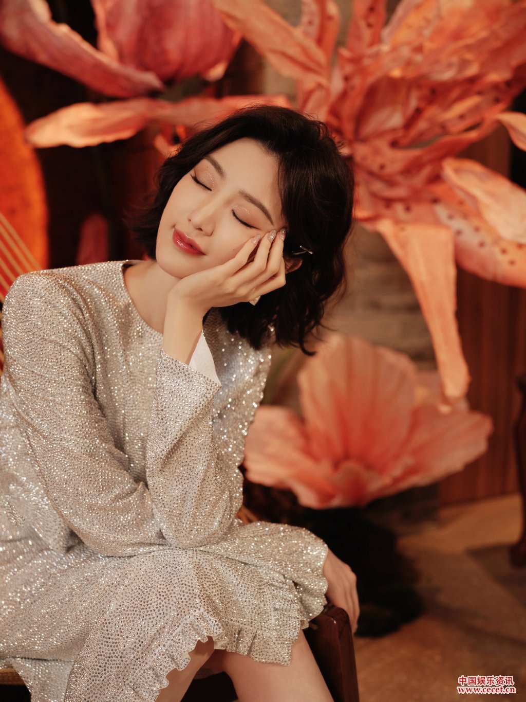 毛晓彤花海丛间甜美照 清秀面容春日浪漫
