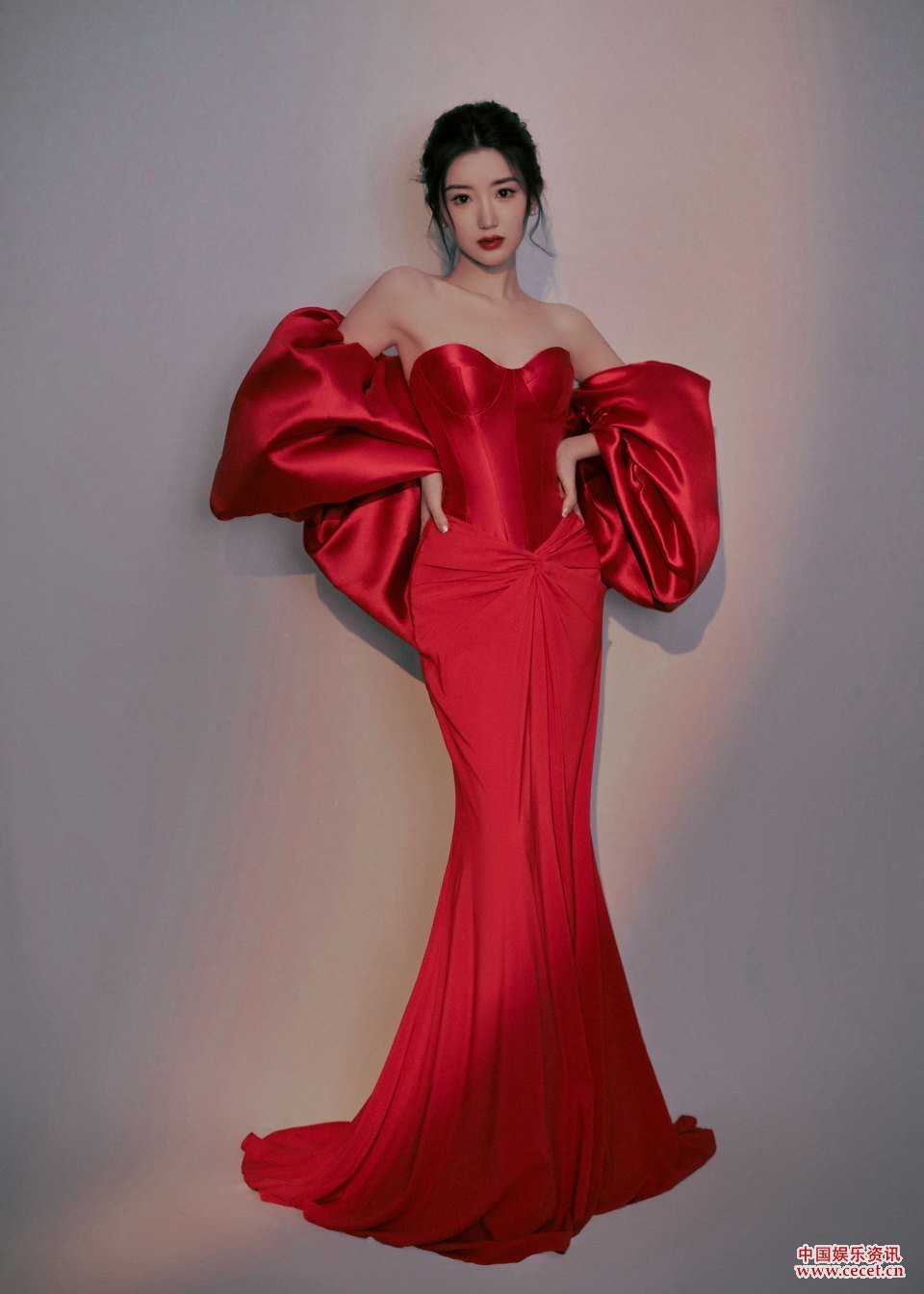 毛晓彤红色礼服热烈奔放 玫瑰旖旎优雅明媚