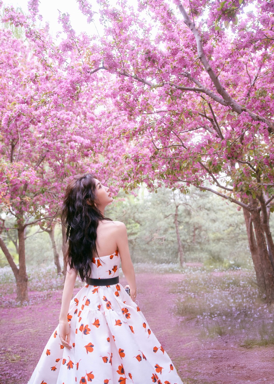 毛晓彤走入花海中明媚热烈 热情跃动青春正风华