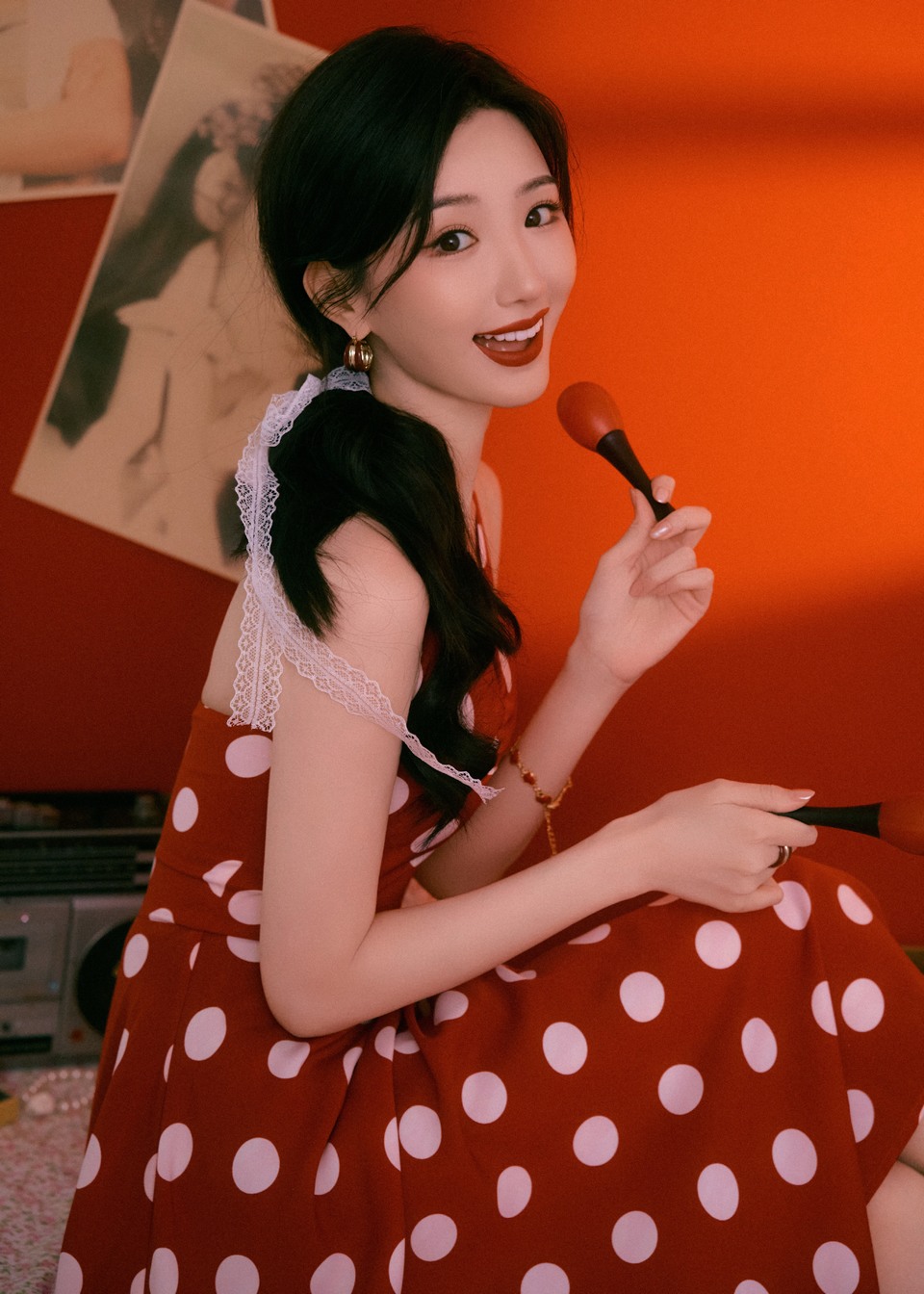 毛晓彤暖光氤氲复古港风 眼波流转间明艳动人