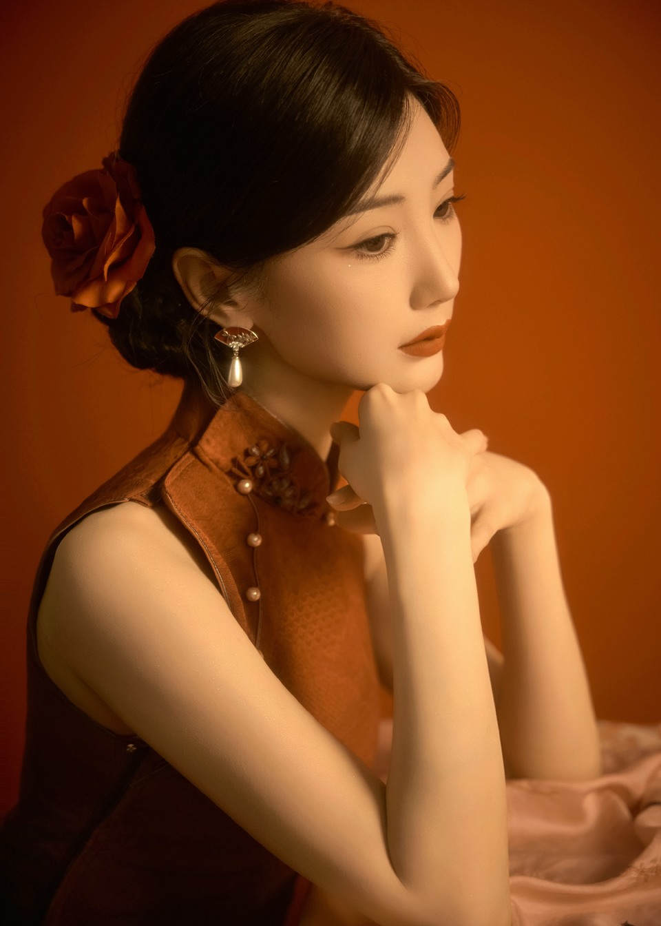 毛晓彤旗袍裁就复古意韵 鬓边花影摇曳中式浪漫