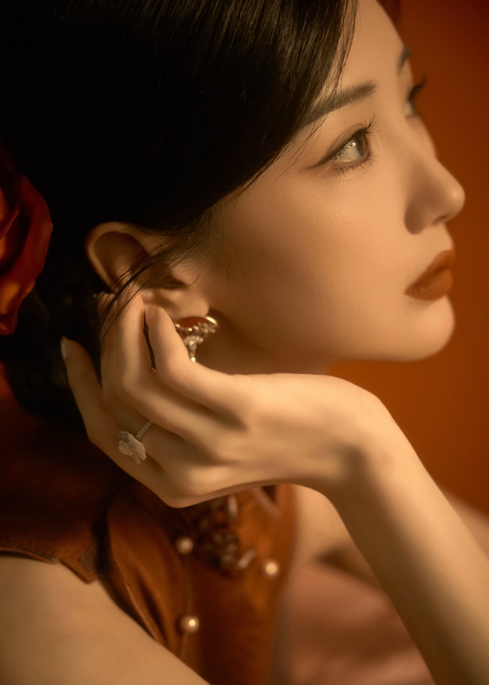 毛晓彤旗袍裁就复古意韵 鬓边花影摇曳中式浪漫
