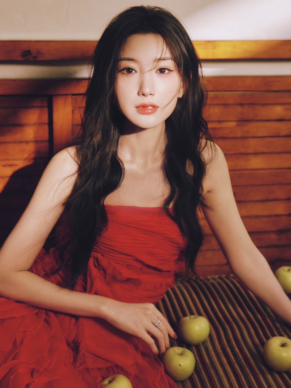 毛晓彤炽热明艳自在随性 流转微光洒落红玫瑰间