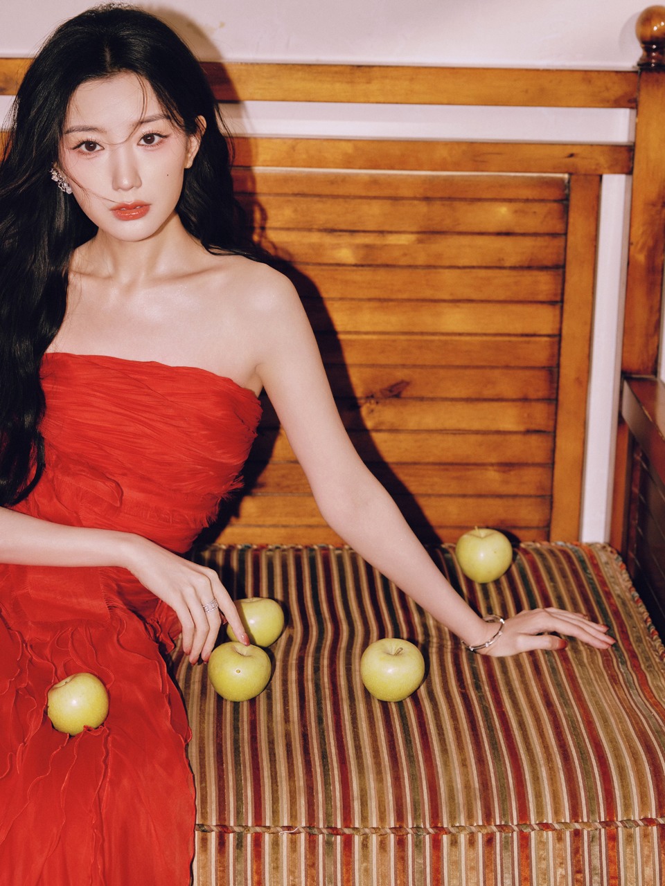 毛晓彤炽热明艳自在随性 流转微光洒落红玫瑰间