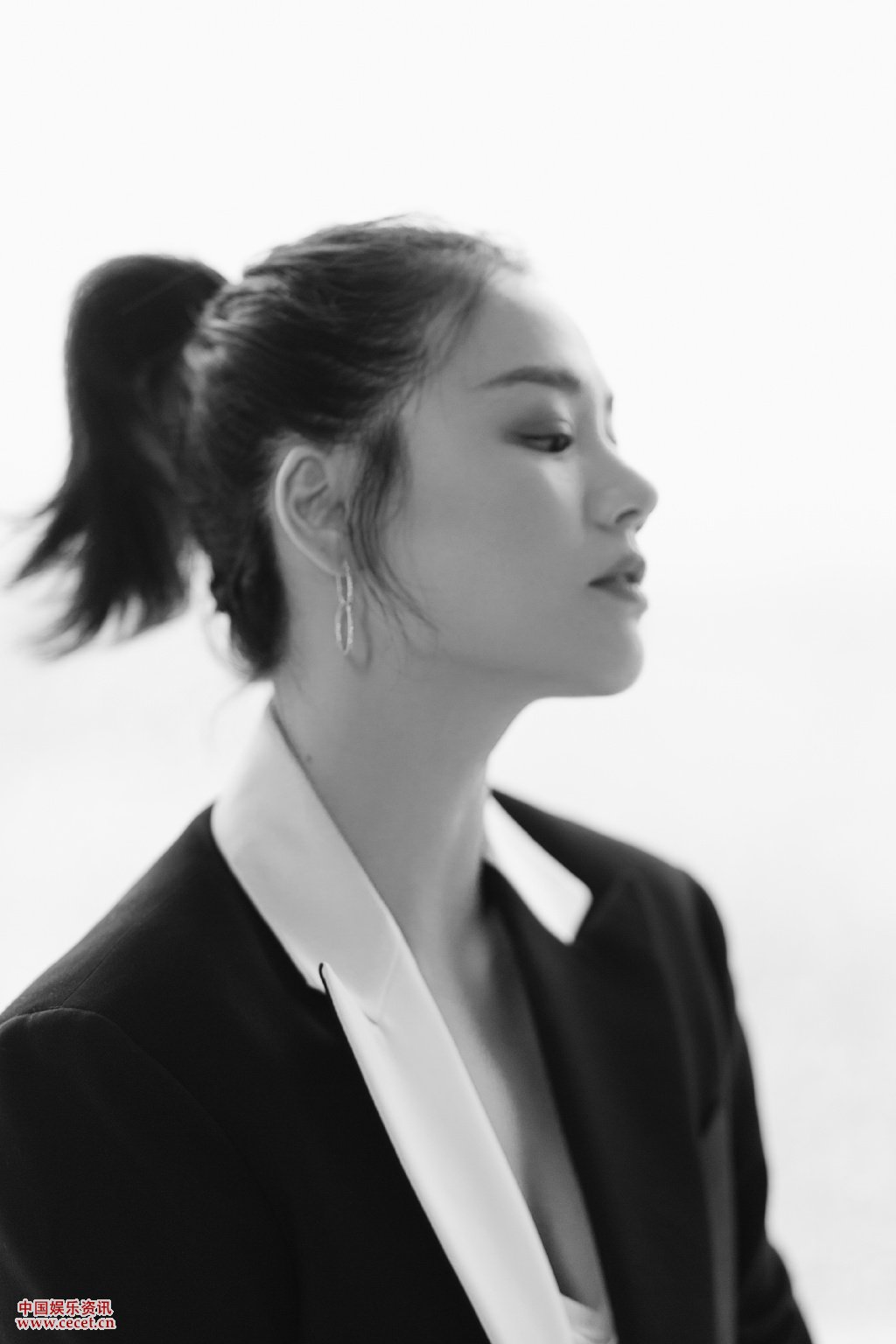 马思纯黑西装英气十足 迷离的眼神值得回味