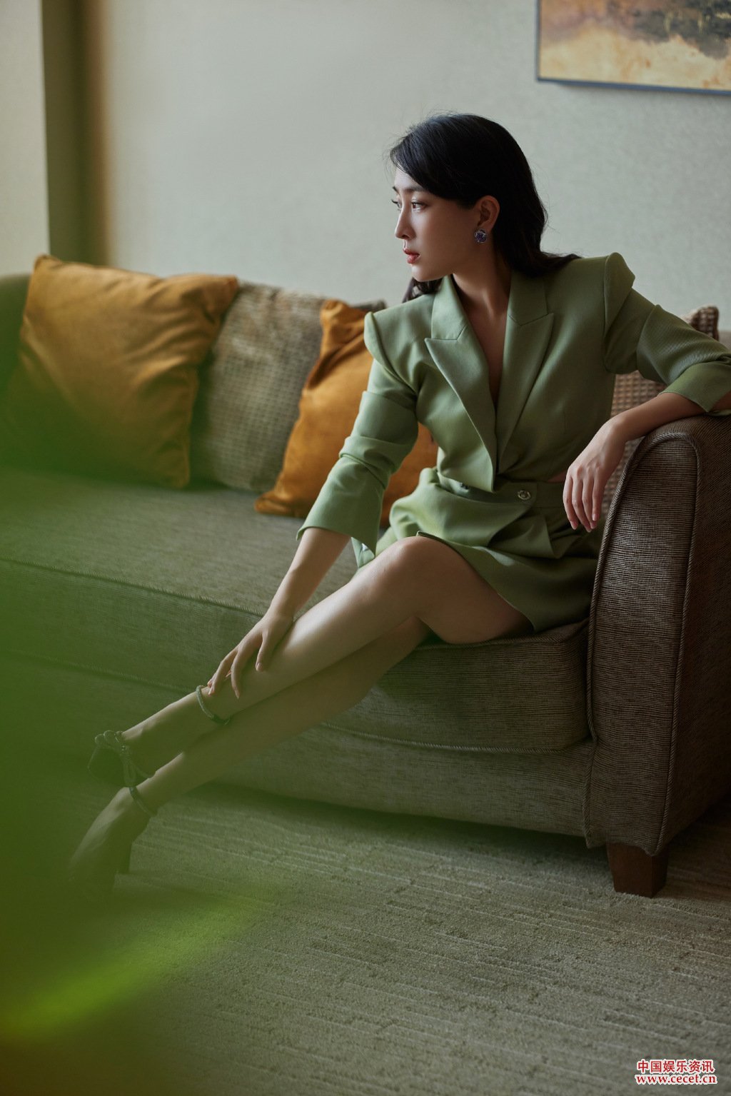 马苏果绿色连身裙美照 从容笃定静谧动人