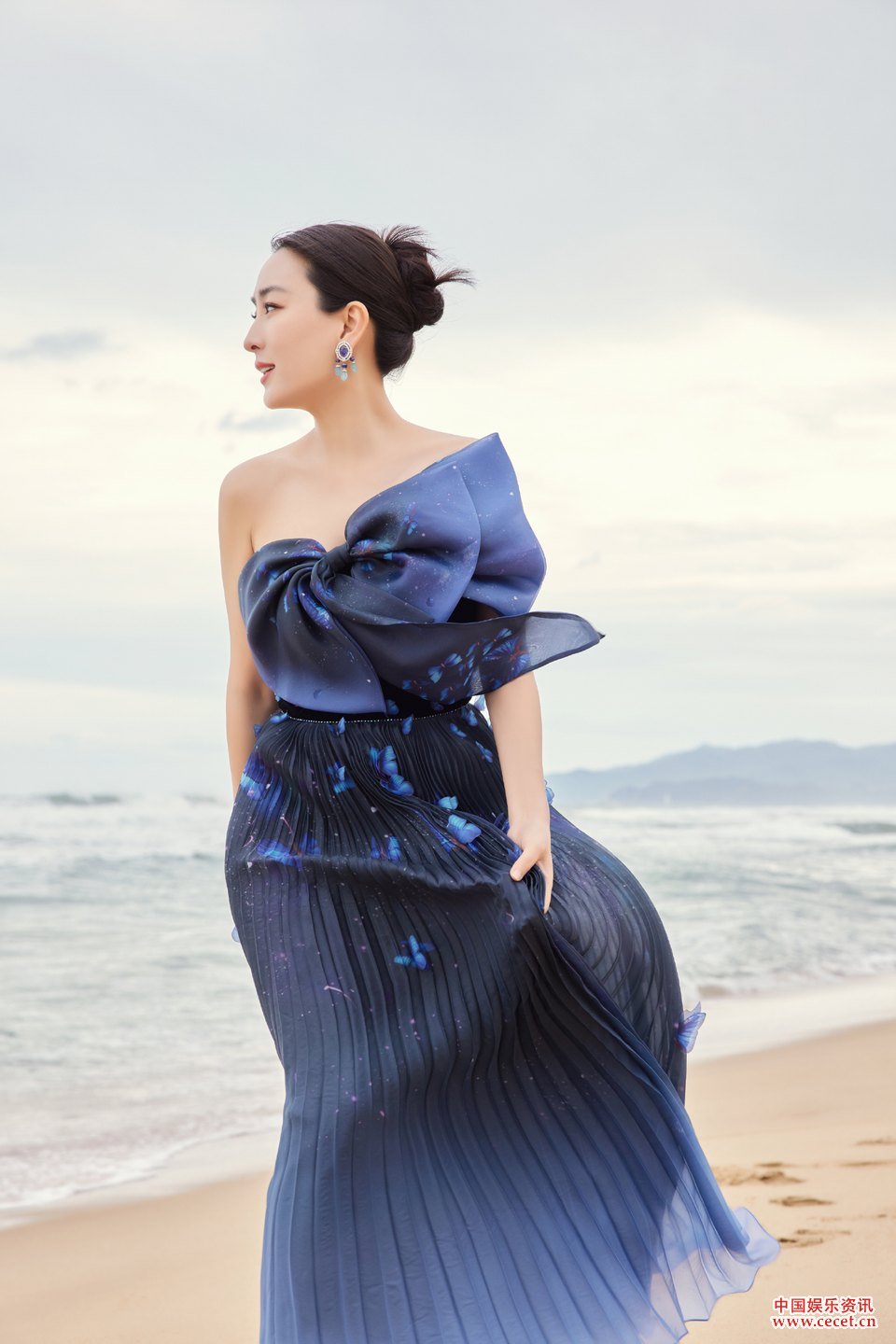 马苏蝴蝶抹胸印花礼服 海风轻拂坠入绮丽梦境