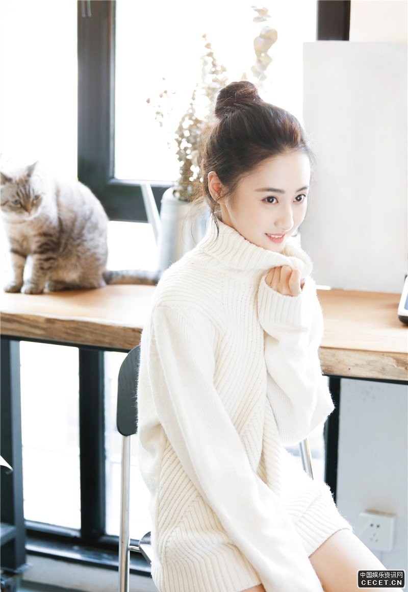 马泽涵白毛衣短裤写真 元气少女清新可爱