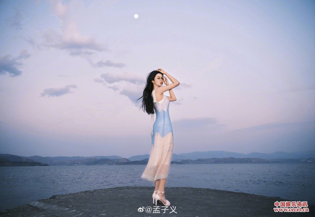 孟子义海边氛围感写真 夜幕笼起漫步苍山洱海