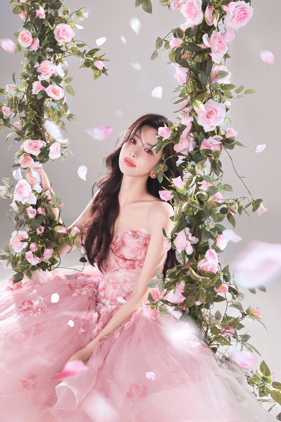孟子义于桃花秋千上轻轻荡漾 宛如童话世界里的公主