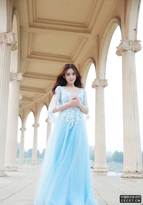 孟子义玻璃纱长裙写真 勾勒出娇好的身材
