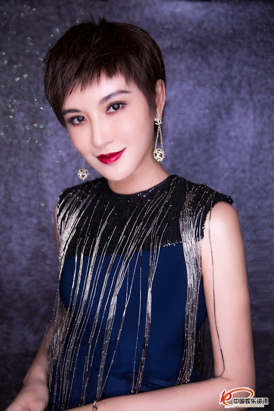 莫小奇藏蓝色蛋糕裙搭配利落短发帅气亮相