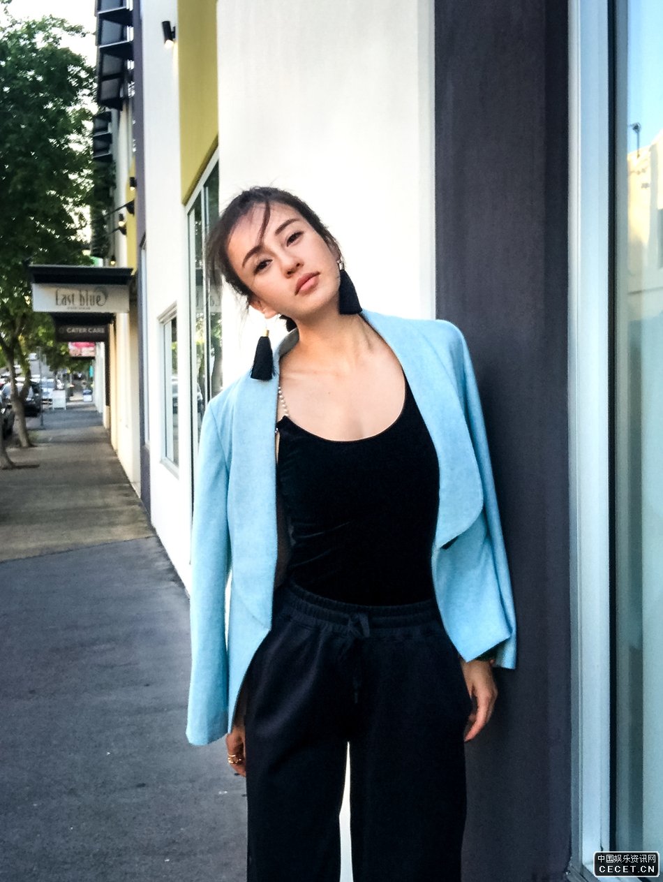 迪丽热巴浅蓝色套装飒飒生风
