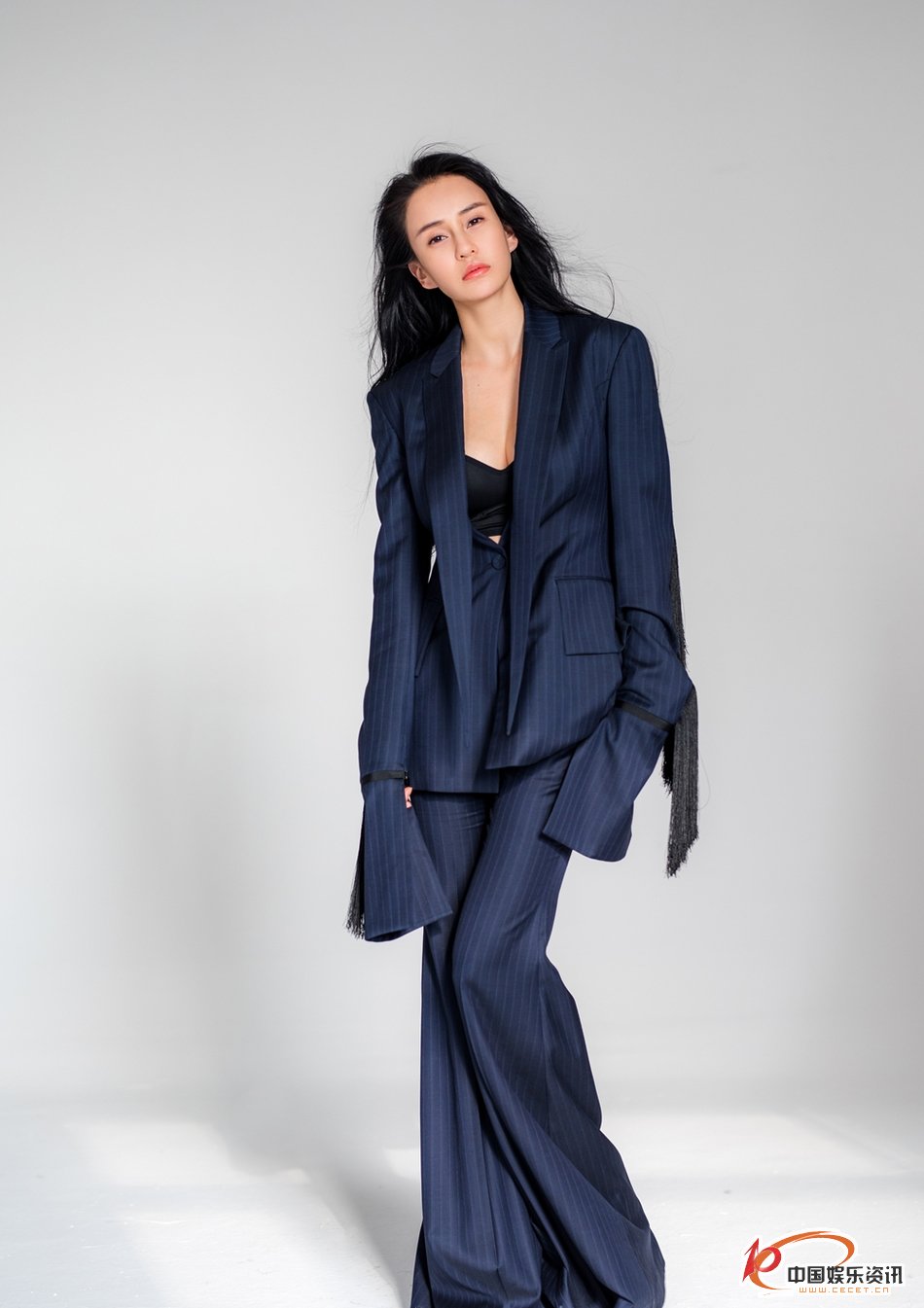 母其弥雅条纹西装写真 看似随性又不失线条美