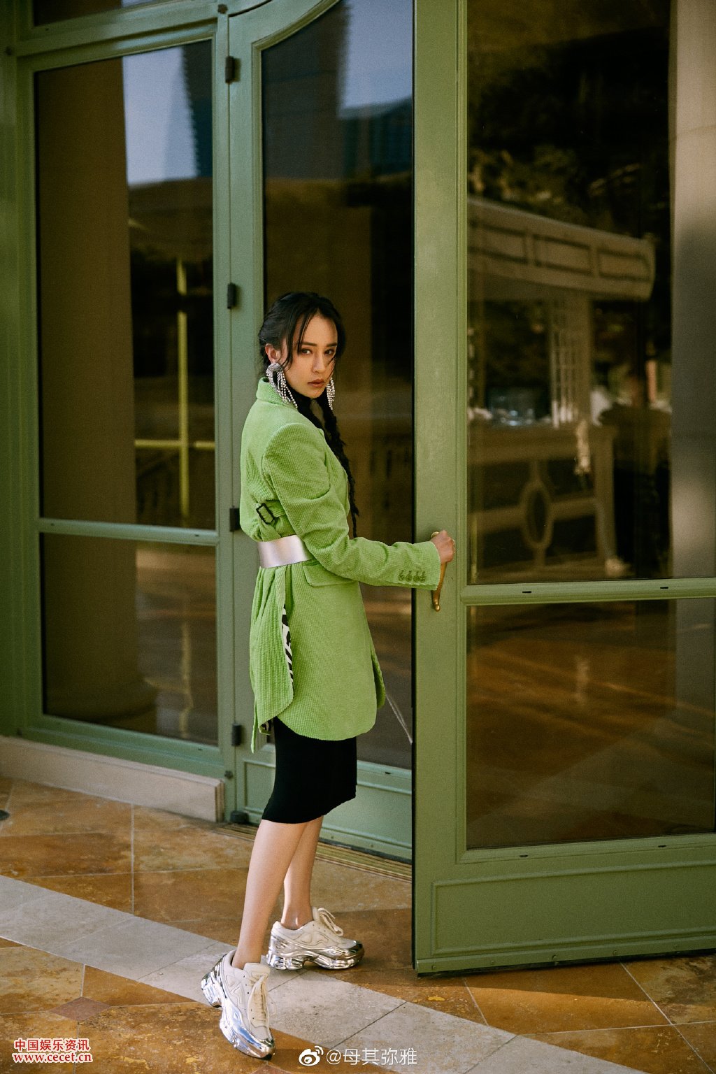 母其弥雅出街休闲随性 绿色外套暖意洋洋