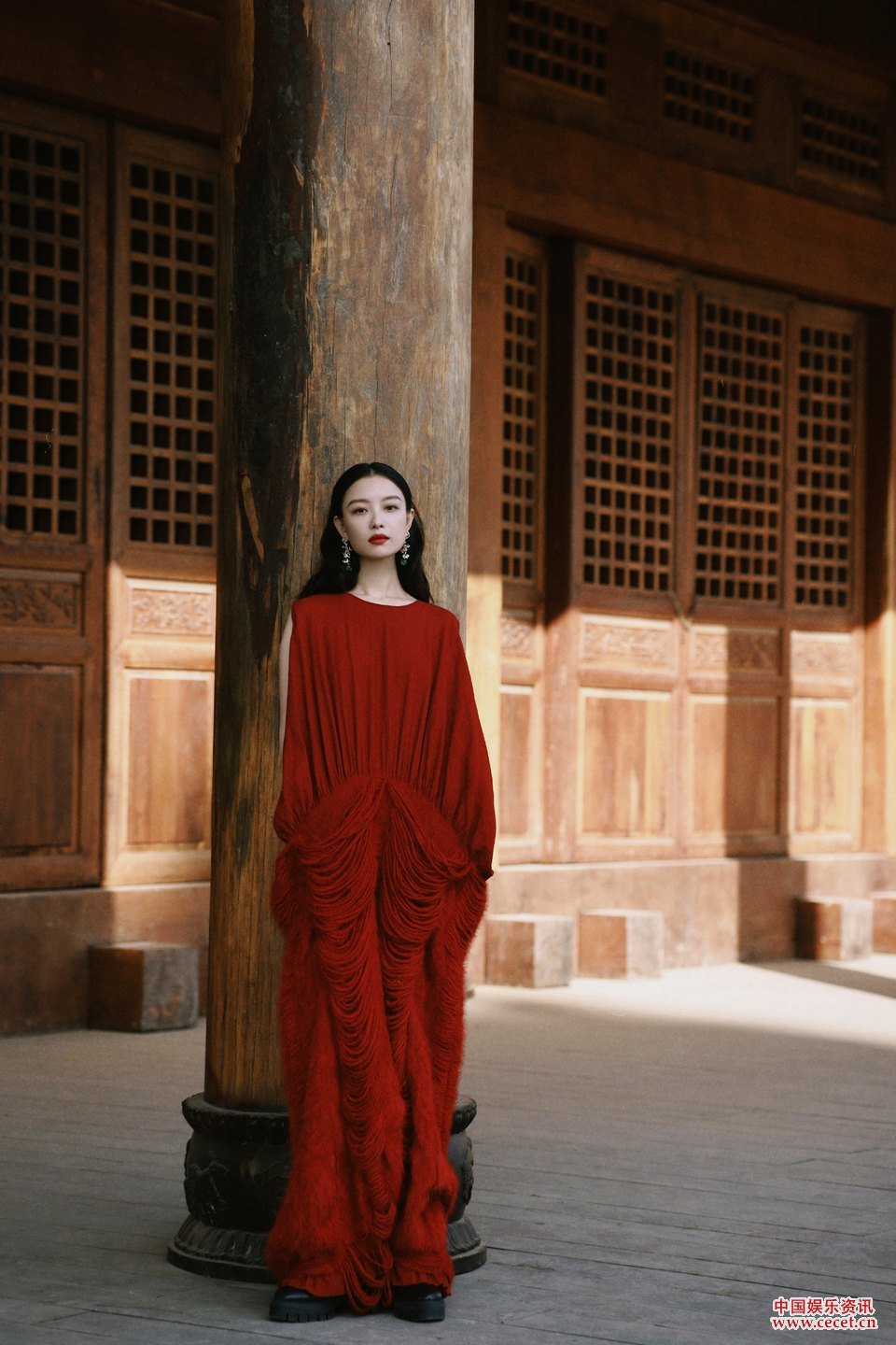 倪妮红色丝绒套装张扬所爱 走走停停天生绝配