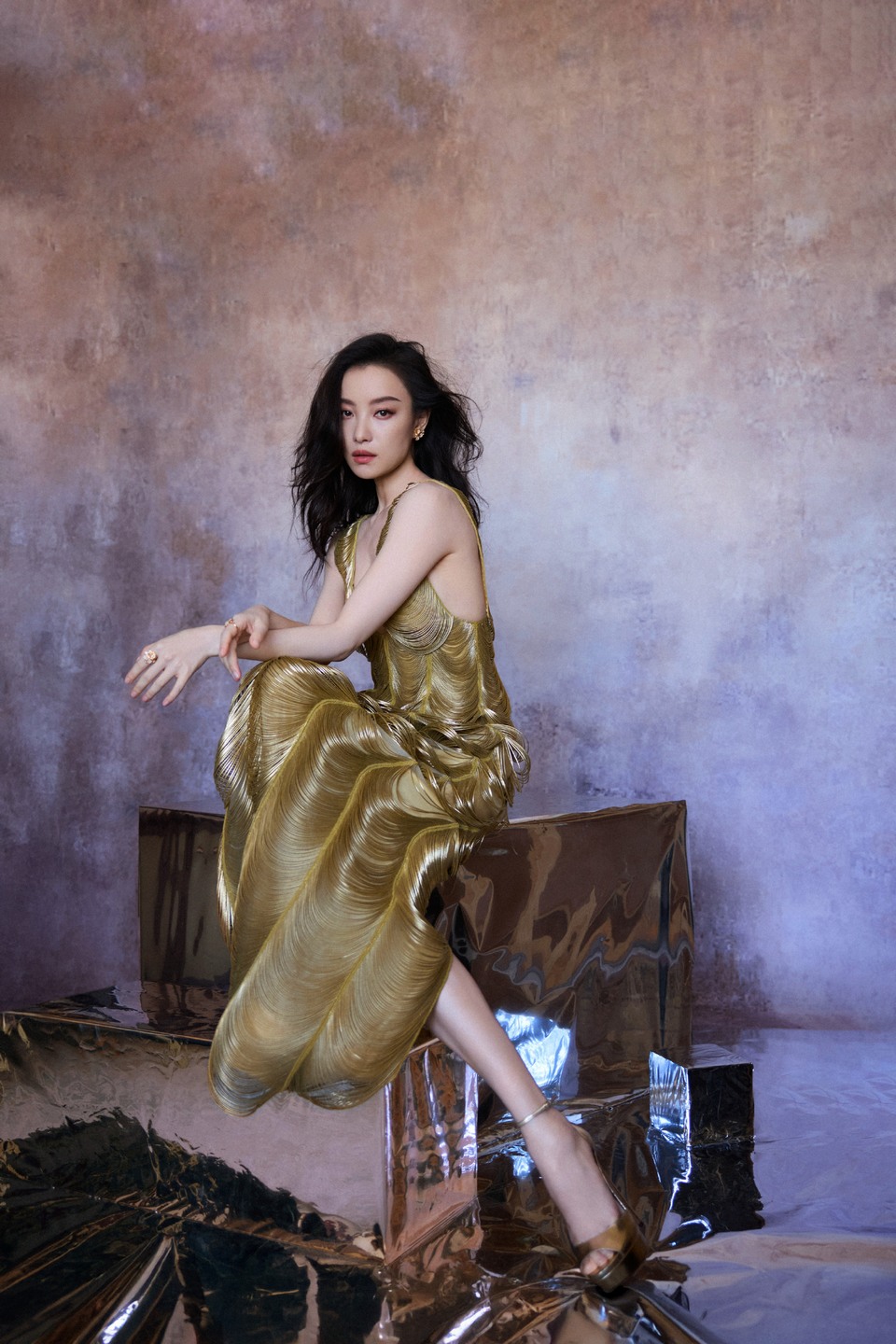 倪妮层叠交织的线条 绘制出超越空间的金色浪潮